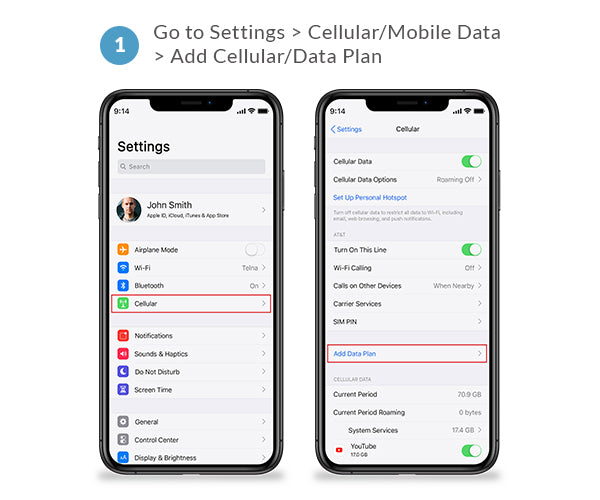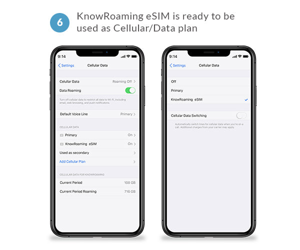 Buy the eSIM data plan for your destination at https://esim.knowroaming.co; you will receive a QR code in the email you provided. If you are a new KnowRoaming user, setup your eSIM profile as follows:
